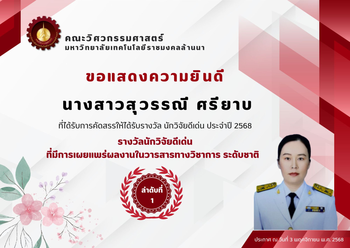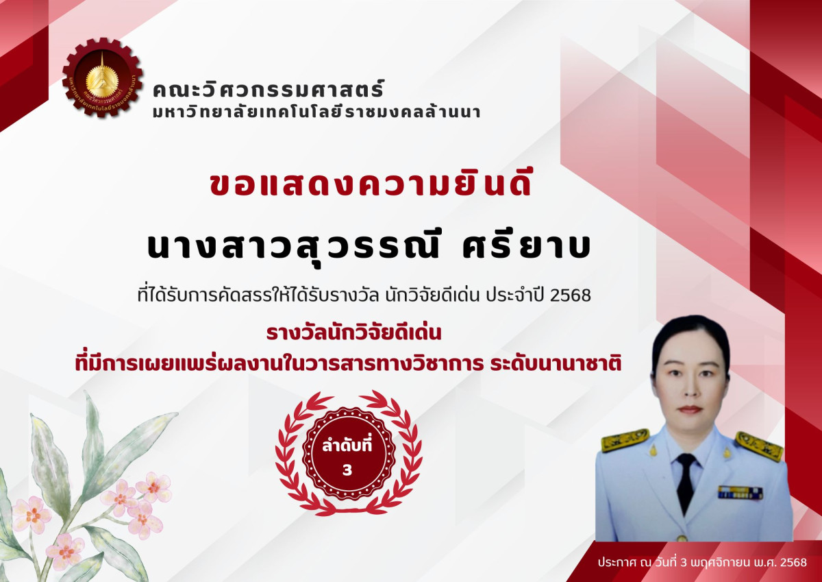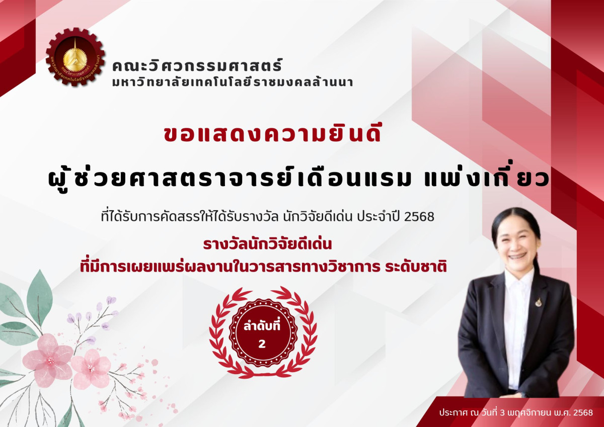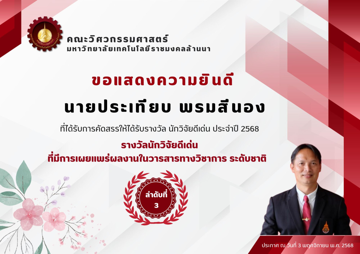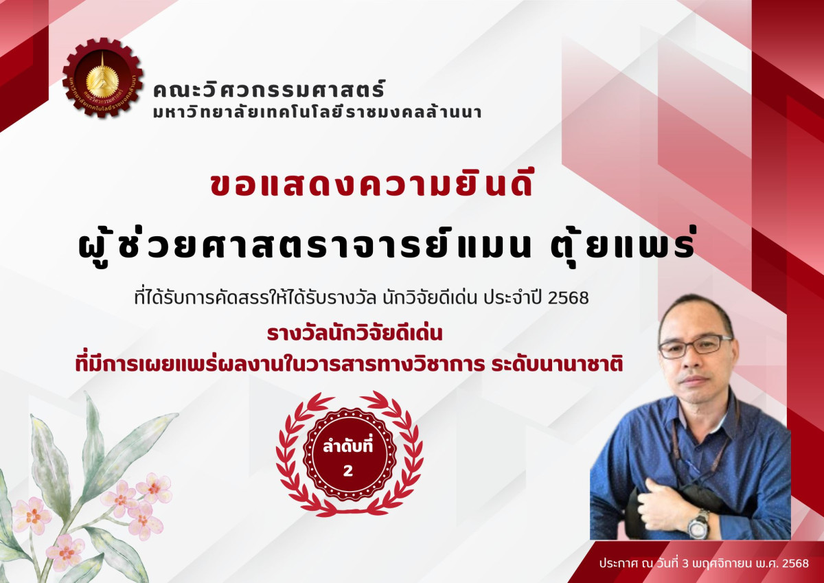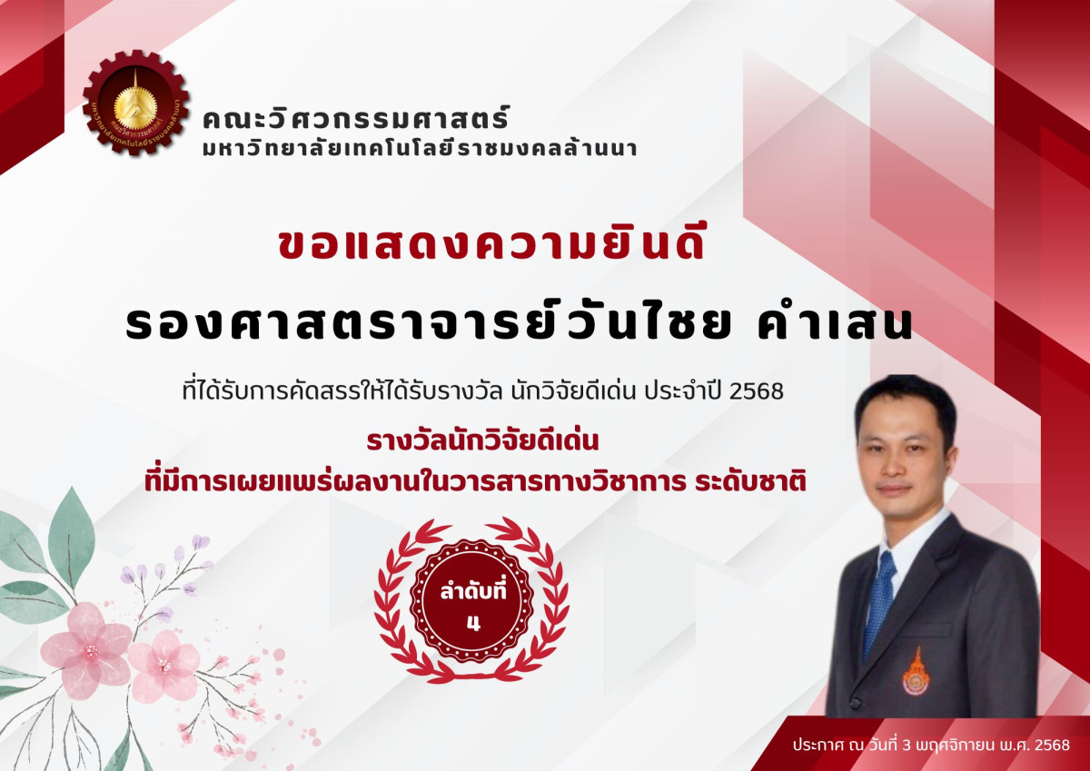โลโก้เว็บไซต์ นักวิจัยดีเด่น 2568 | คณะวิศวกรรมศาสตร์ มหาวิทยาลัยเทคโนโลยีราชมงคลล้านนา