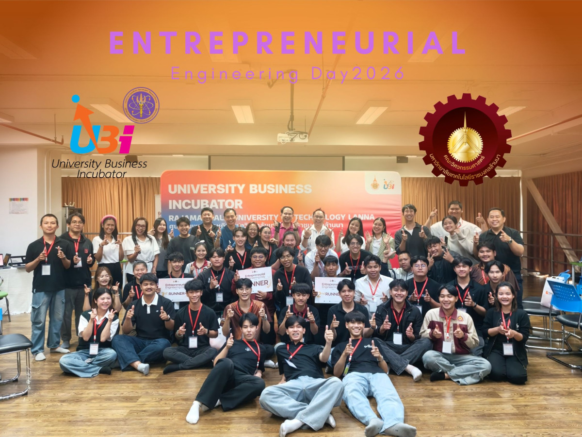 คณะวิศวกรรมศาสตร์ มหาวิทยาลัยเทคโนโลยีราชมงคลล้านนา ร่วมกับ ศูนย์บ่มเพาะวิสาหกิจ มทร.ล้านนา จัดโครงการอบรมเชิงปฏิบัติการเสริมสร้างทักษะและแนวคิดผู้ประกอบการ “Entrepreneurial Engineering Day” สำหรับนักศึกษาคณะวิศวกรรมศาสตร์ ประจำปีการศึกษา 2568 ระหว่างวันที่ 21 – 22 กุมภาพันธ์ 2569 ณ ห้องประชุม Innovation ชั้น 6 อาคารเฉลิมพระเกียรติ มทร.ล้านนา จังหวัดเชียงใหม่