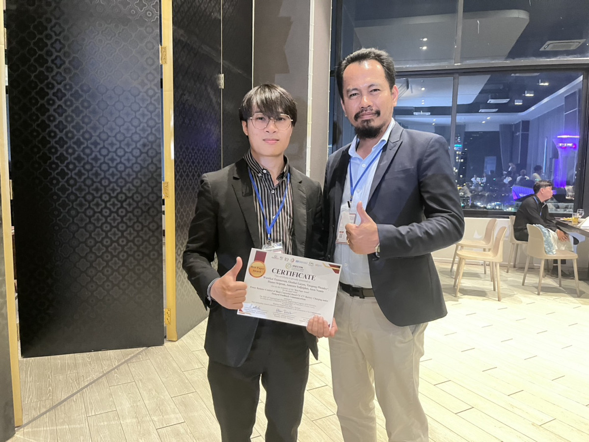 ผลงานวิจัยที่ได้รับรางวัลมีชื่อเรื่อง “Power Balance Control of Buck Converter-based CC-CV Battery Charging under Delayed Feedback Communications” ซึ่งนำเสนอแนวทางการควบคุมสมดุลพลังงานของระบบชาร์จแบตเตอรี่แบบ CC-CV โดยใช้วงจร Buck Converter ภายใต้สภาวะการสื่อสารแบบมีความล่าช้า เพื่อเพิ่มประสิทธิภาพและเสถียรภาพของระบบชาร์จแบตเตอรี่ในงานด้านระบบพลังงานไฟฟ้าและอิเล็กทรอนิกส์กำลัง