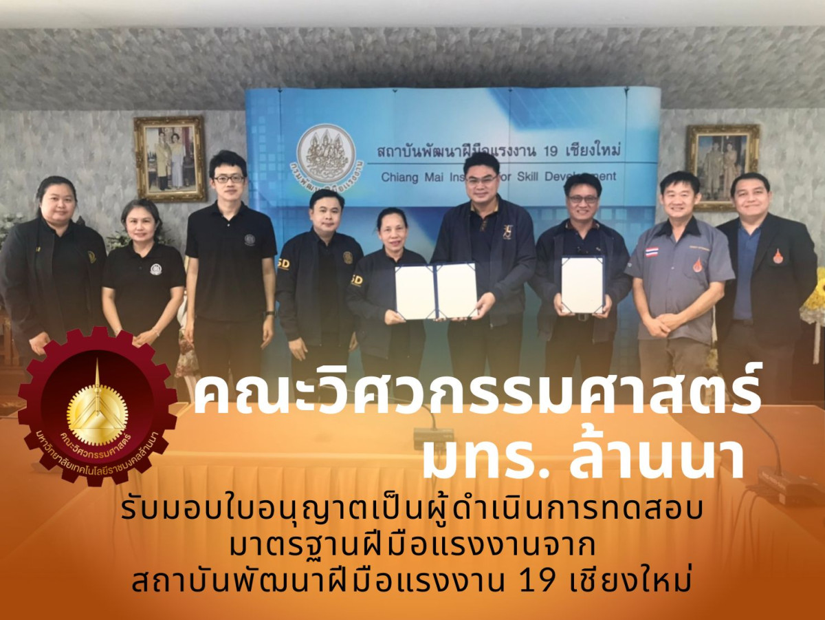 คณะวิศวกรรมศาสตร์ มหาวิทยาลัยเทคโนโลยีราชมงคลล้านนา ได้รับการอนุญาตให้เป็นผู้ดำเนินการทดสอบมาตรฐานฝีมือแรงงานแห่งชาติ ภายใต้การกำกับของ ศูนย์ทดสอบมาตรฐานฝีมือแรงงานมหาวิทยาลัยเทคโนโลยีราชมงคลล้านนา เพื่อยกระดับการพัฒนาทักษะกำลังคนด้านวิศวกรรมและเทคโนโลยีให้สอดคล้องกับความต้องการของภาคอุตสาหกรรม